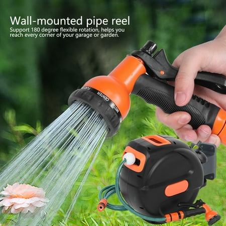 Aplusbuy 65ft auto rewind garden water hose reel retractable wall mounted lawn garage car sprayer. You can employ these auto retractable garden hose for irrigational uses too, as they have a brilliant water pumping. To help retract the hose after using it, there is an automatic hose guide which helps to avoid stiffness, tangling and twisting. Low maintenance durable resin construction. Suncast aquawinder 125ft lightweight auto garden retract hose reels.